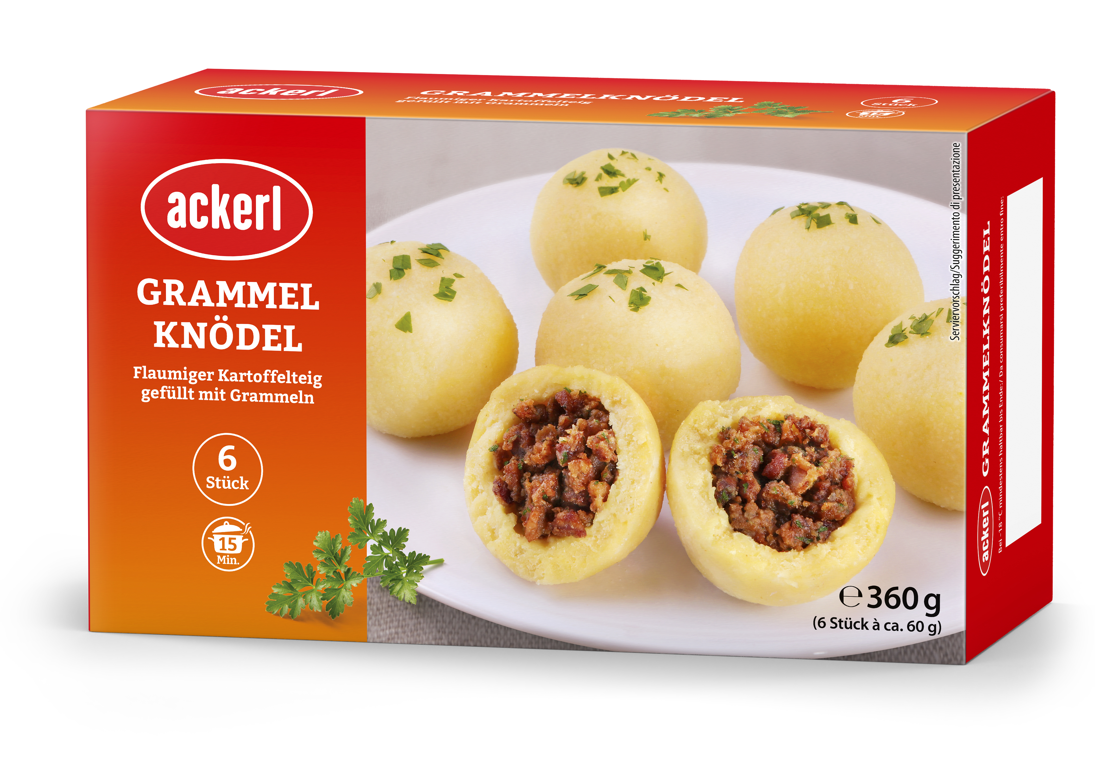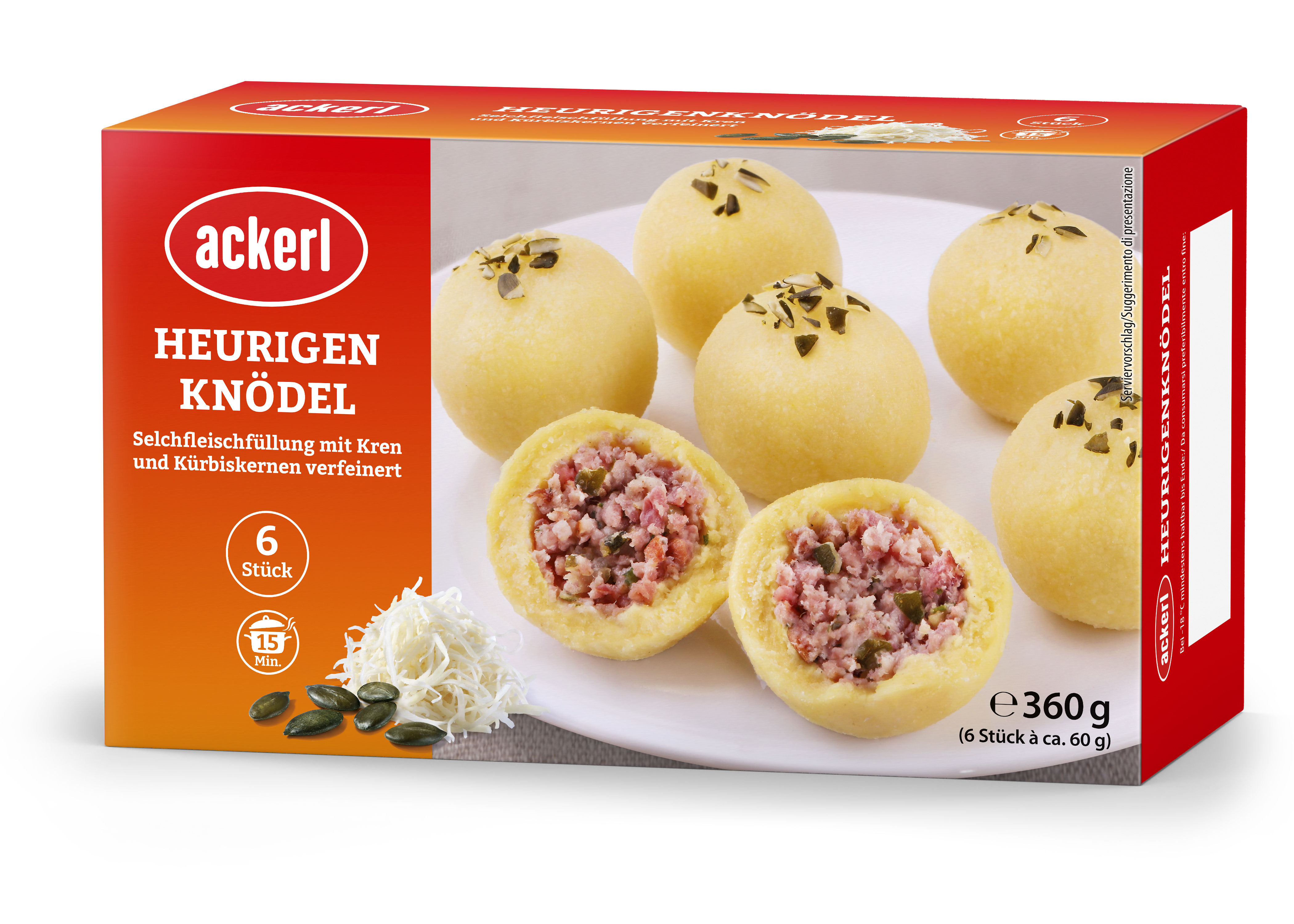 Zusätzlich zu den bekannten und beliebten Klassikern Semmelknödel, Kartoffelknödel und Wurstknödel, die zu je 10 Stück à 90-100g in der Großpackung erhältlich sind, bereichern noch in diesem Monat drei neue Mini-Knödelsorten mit je 6 Stück à 60g in der Packung, das Tiefkühlregal. Neben dem Grammel Knödel im Kleinformat, dem g’schmackigen Klassiker, der flaumigen Kartoffelteig mit feinen Grammeln vereint, gibt es mit dem Heurigen Knödel auch eine moderne, pikante Kreation. Die Selchfleischfüllung, verfeinert mit Kren und gehackten Kürbiskernen, umhüllt von flaumigem Kartoffelteig, passt perfekt für den Herbst und den kleinen Hunger. Ebenso wie der Spinat-Käse Knödel, der das fleischlose Angebot optimal ergänzt. Der herzhafte Semmelknödel mit Spinat, Käse und Röstzwiebeln überzeugt als Hauptgericht ebenso wie als Beilage. Die raffinierten Rezepturen eint die Liebe zum Detail und der Einsatz hochwertiger Zutaten.